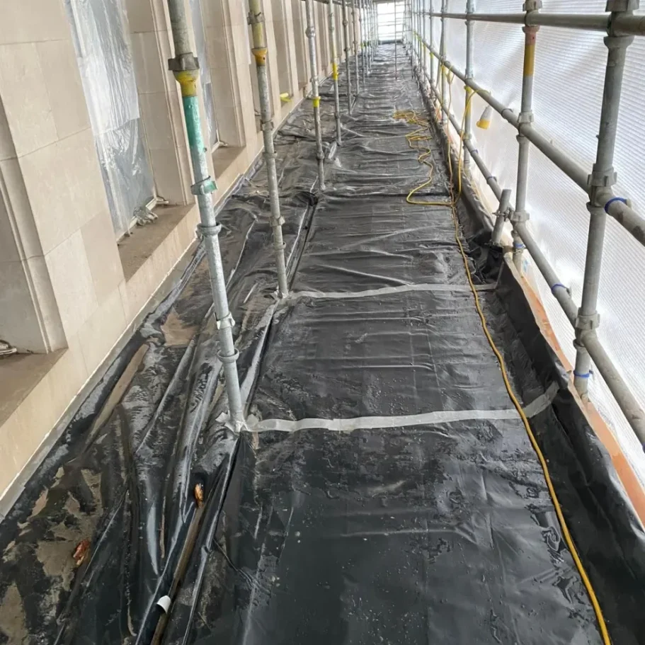 Our specialist team takes great care to       properly protect all surrounding areas before carrying out cleaning works. Full sheeting and site protection ensures the building and surrounding surfaces remain safeguarded during the process.